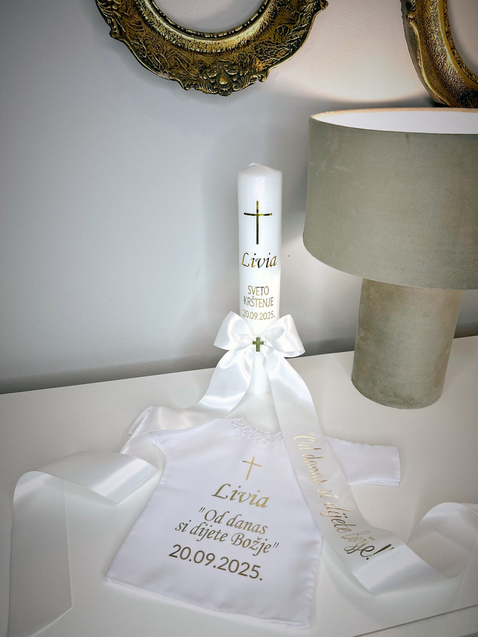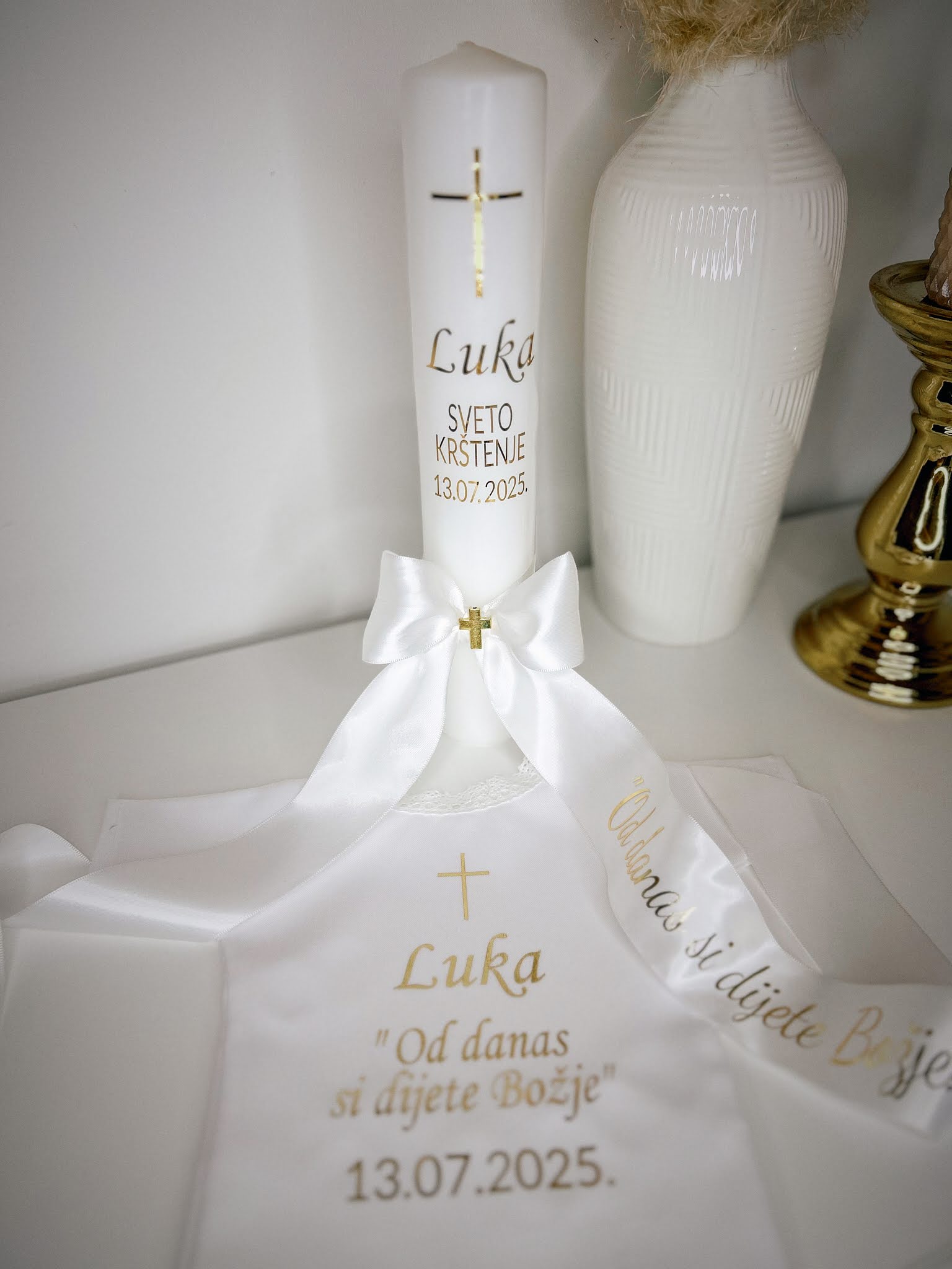 - Srednji set sadrži: Bibliju, krsna košuljicu i krsna svijeću.