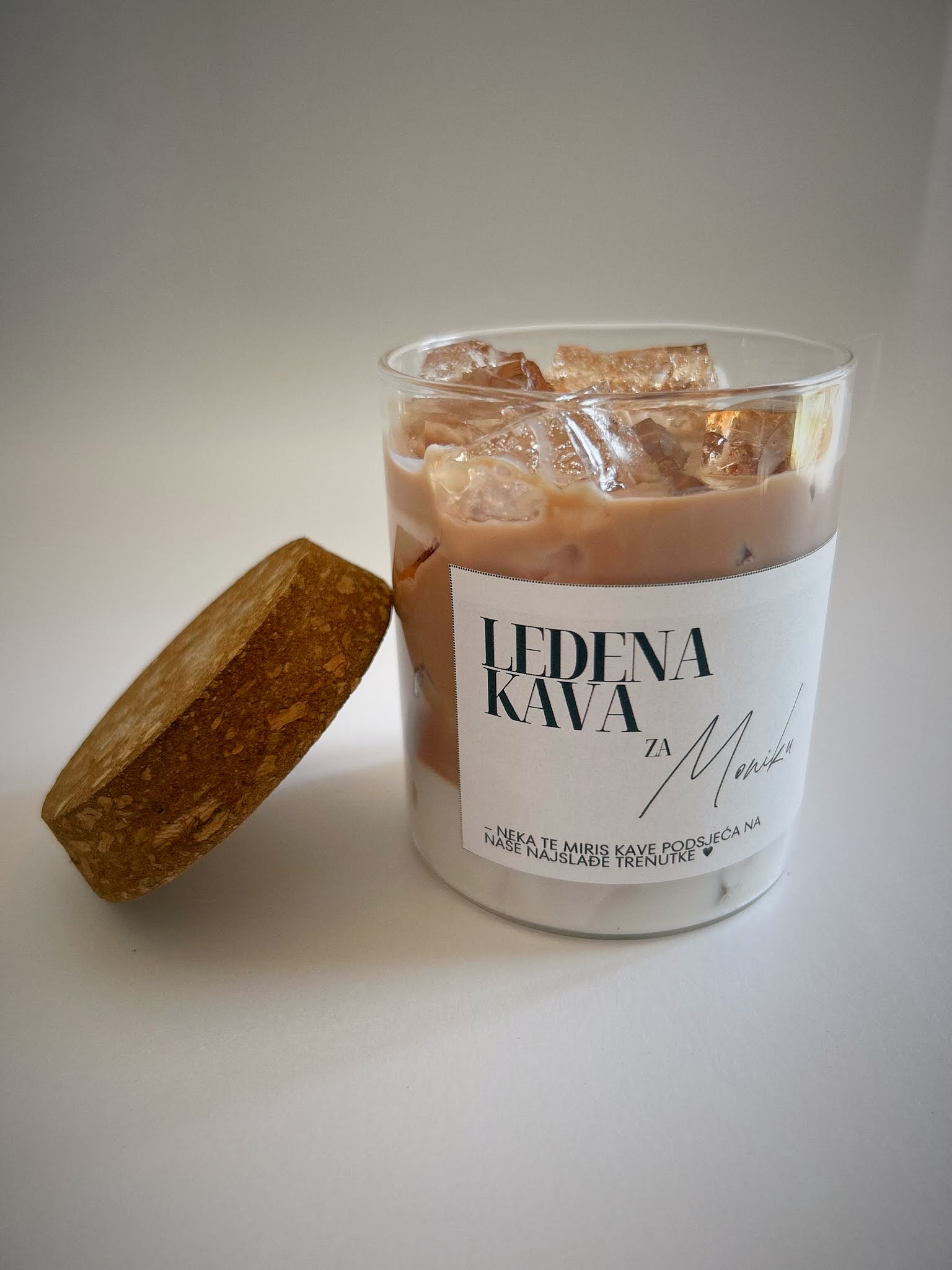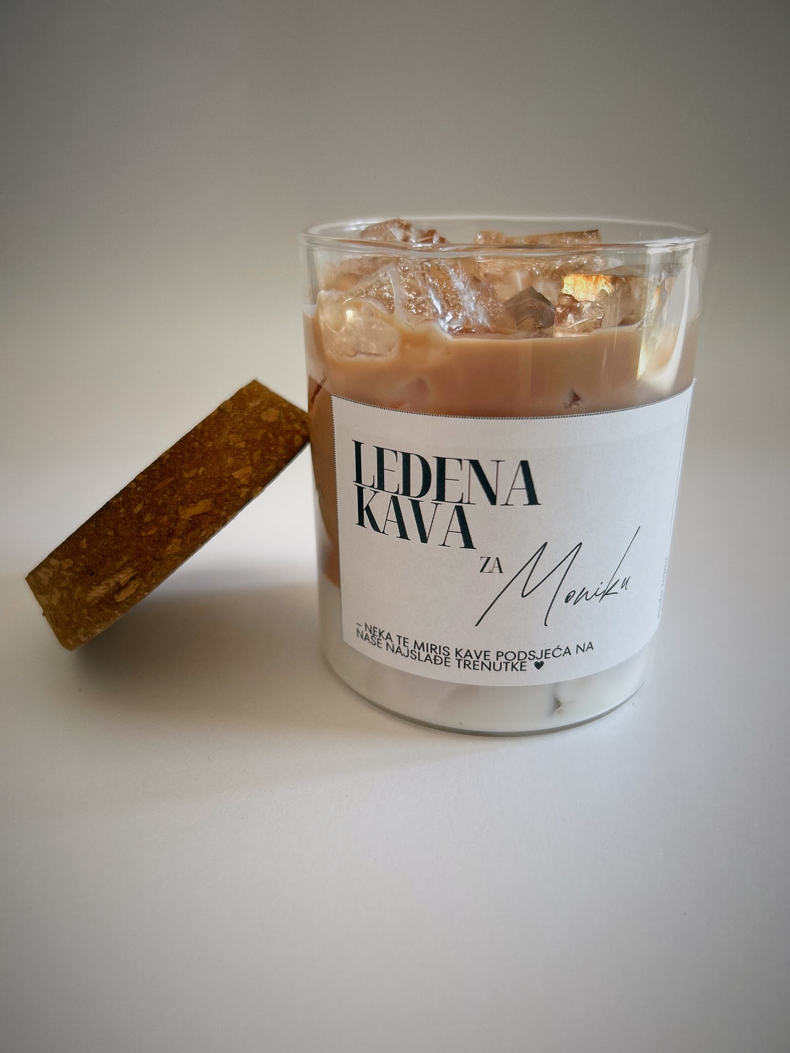 - Svijeća inspirirana ledenom kavom, kremasta boja, realistični voštani “led” i predivan miris koji podsjeća na prve gutljaje omiljenog napitka