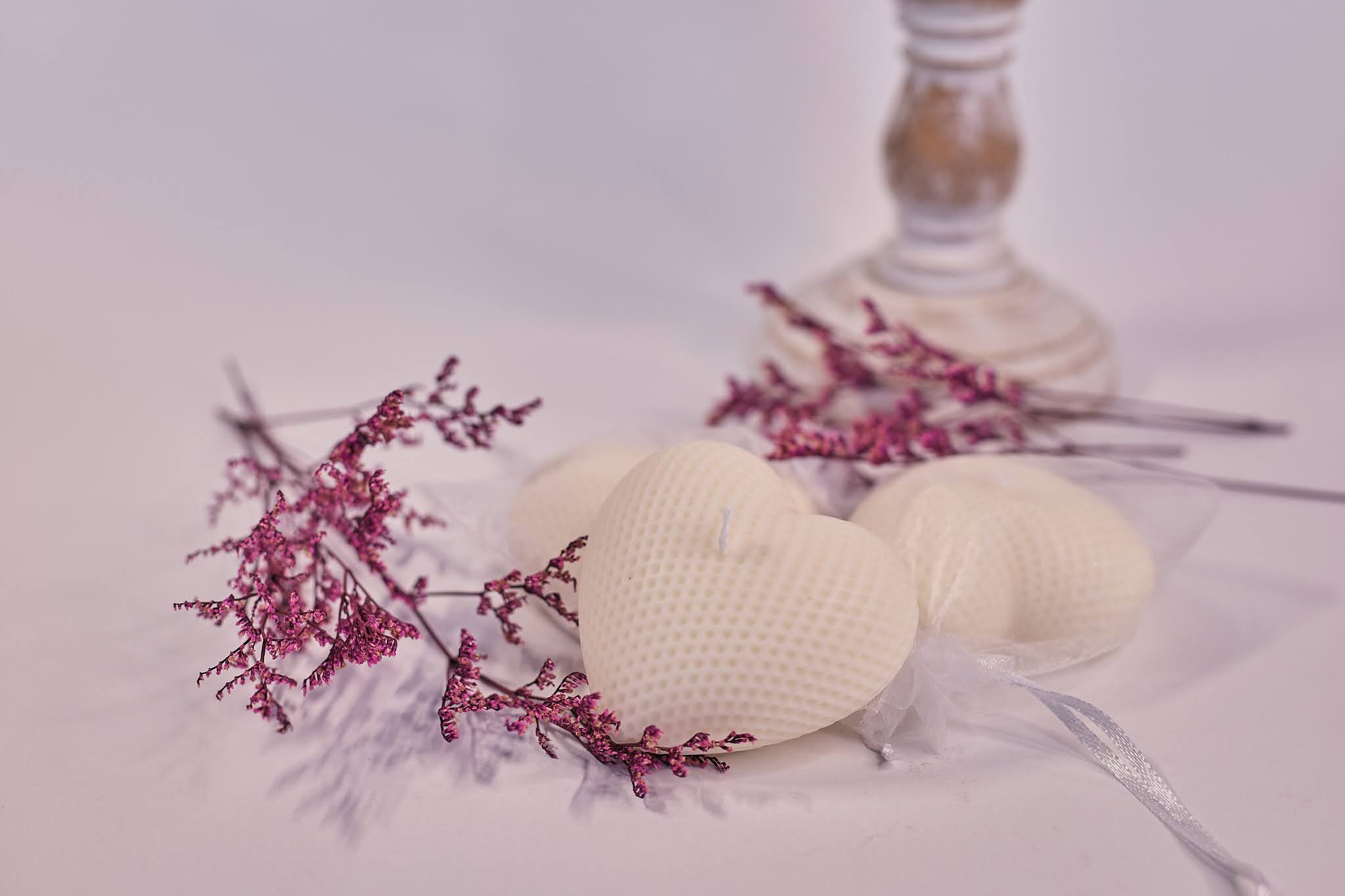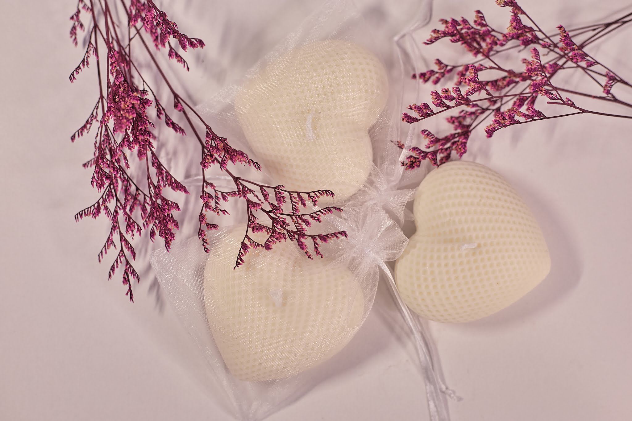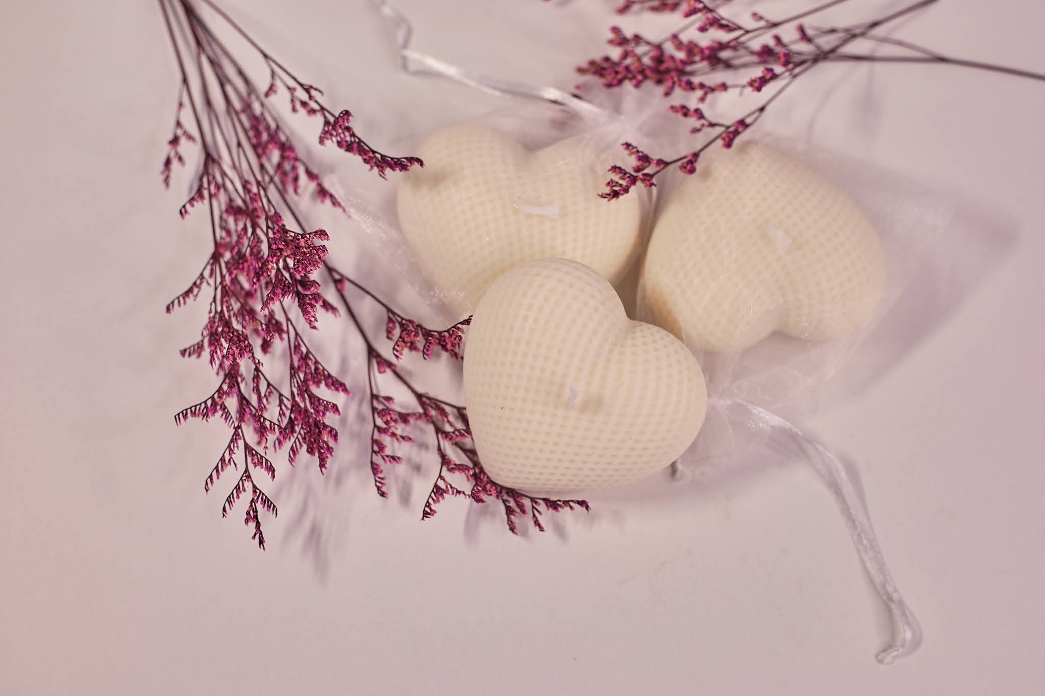 • Nježna voštana srca s teksturiranim uzorkom, idealna kao mali poklon za goste ili dio dekoracije. Dolaze pakirana u prozirnoj organza vrećici ili kutijici, spremna za darivanje na vjenčanjima, krštenjima i drugim posebnim prigodama