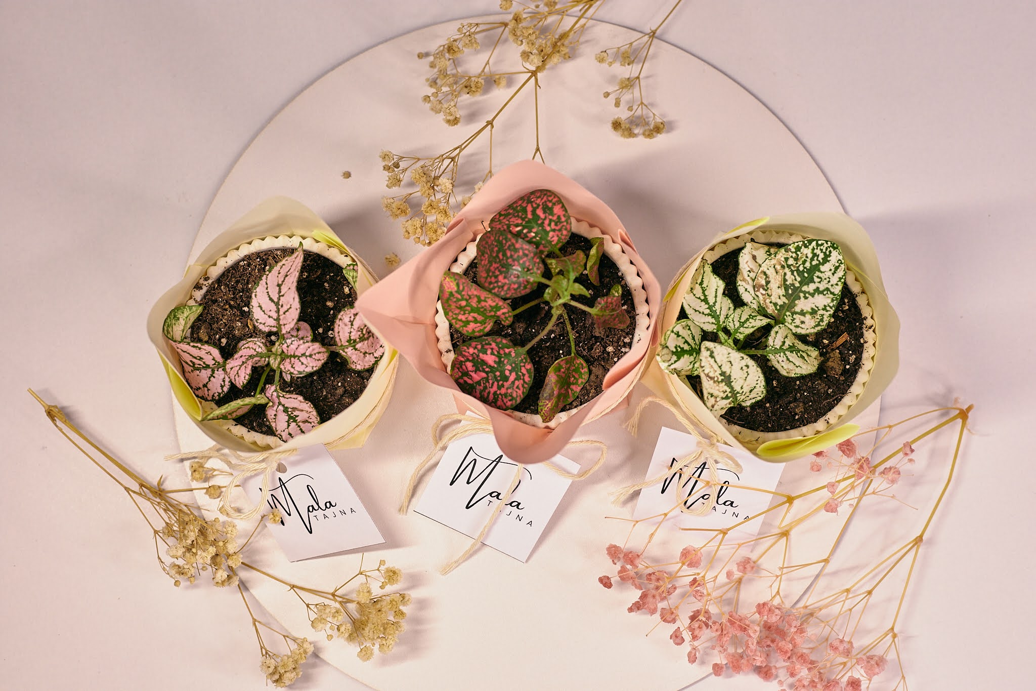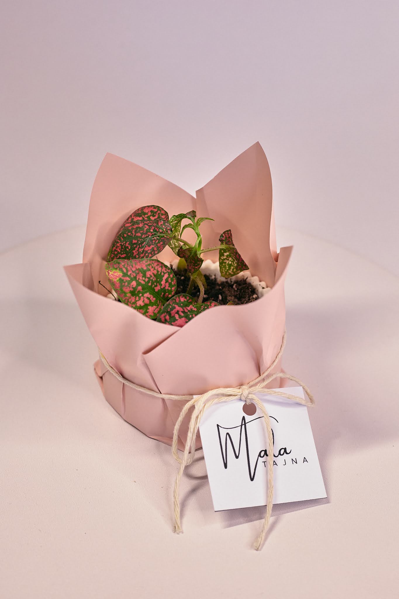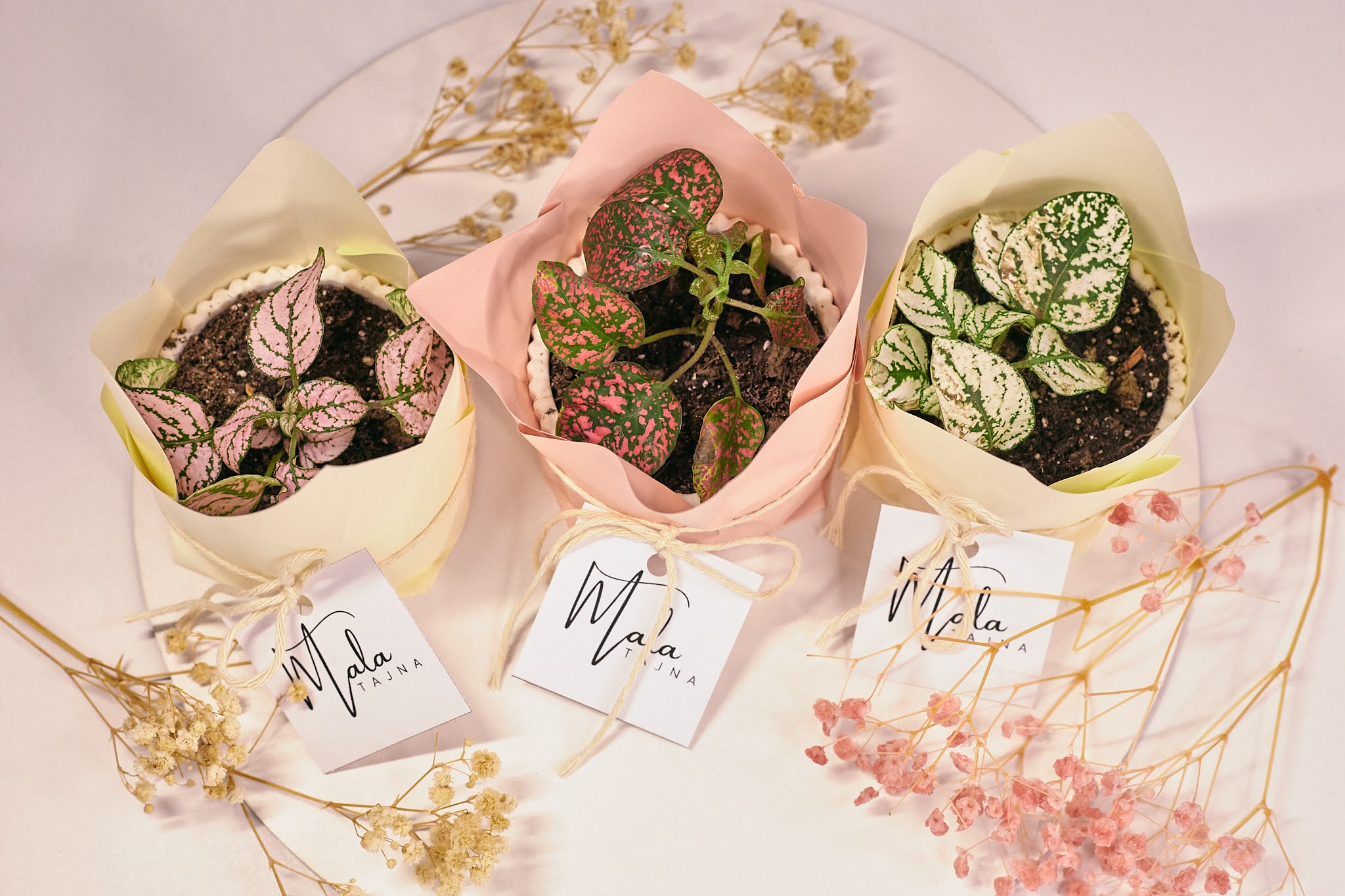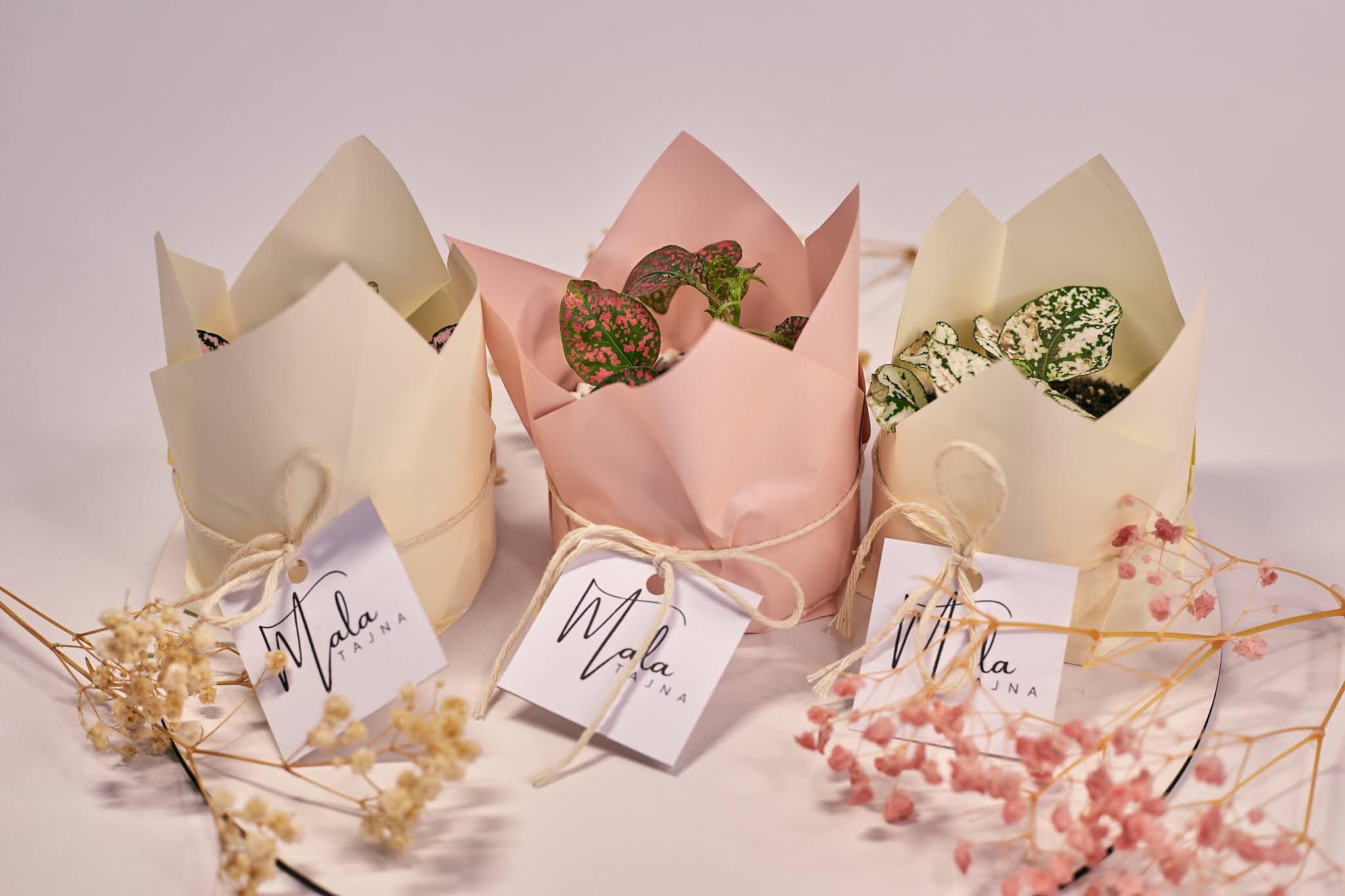 - Maleni sukulenti umotani u dekorativni papir i vezani prirodnim konopcem