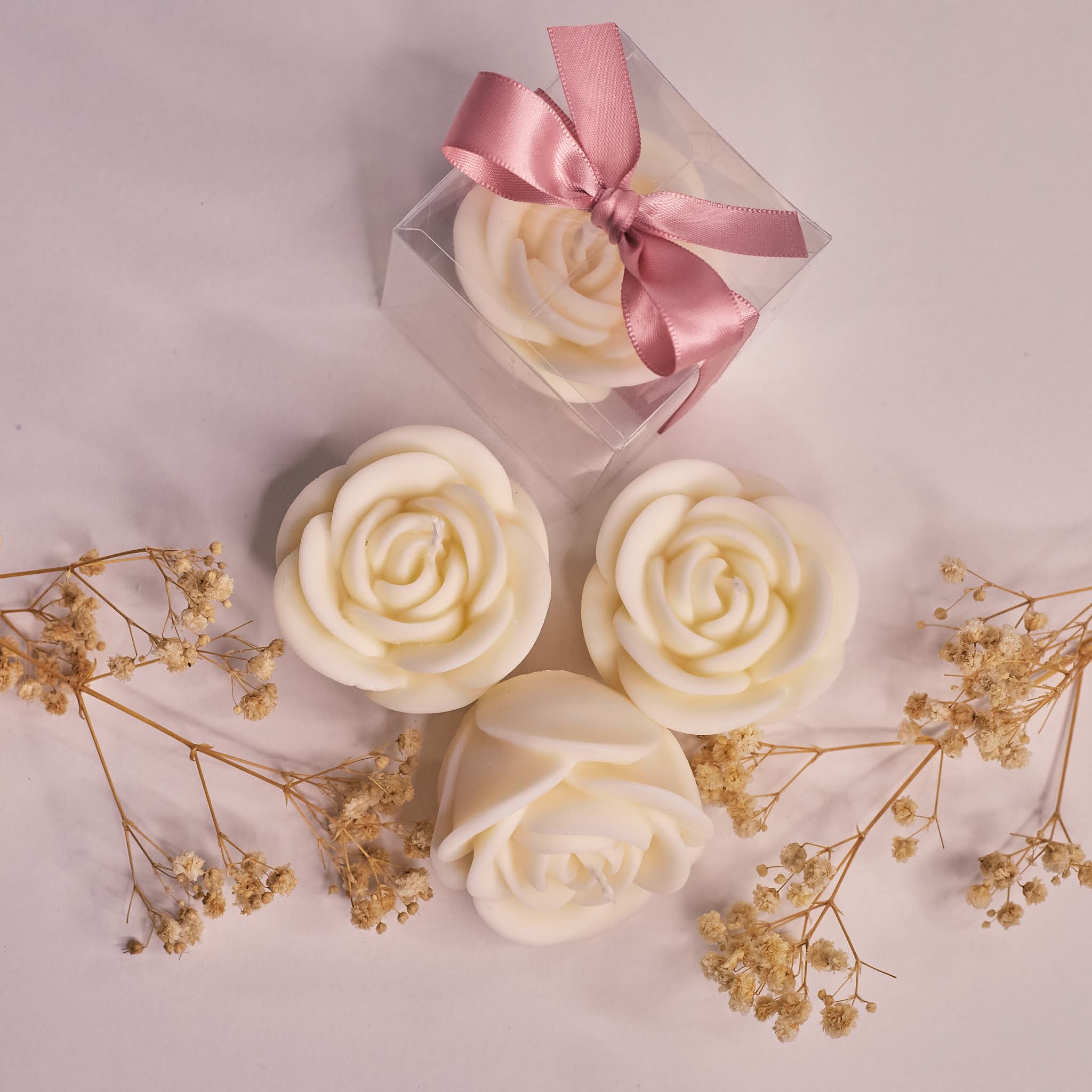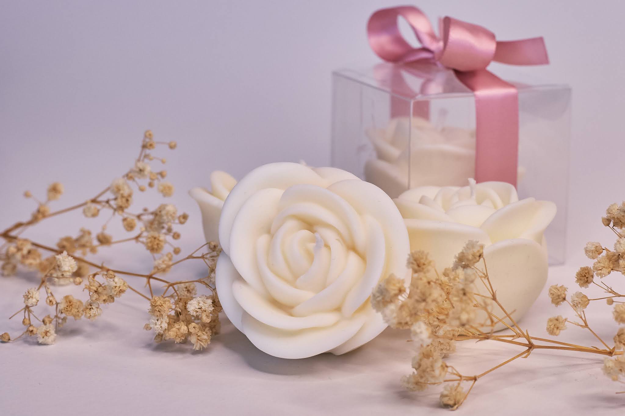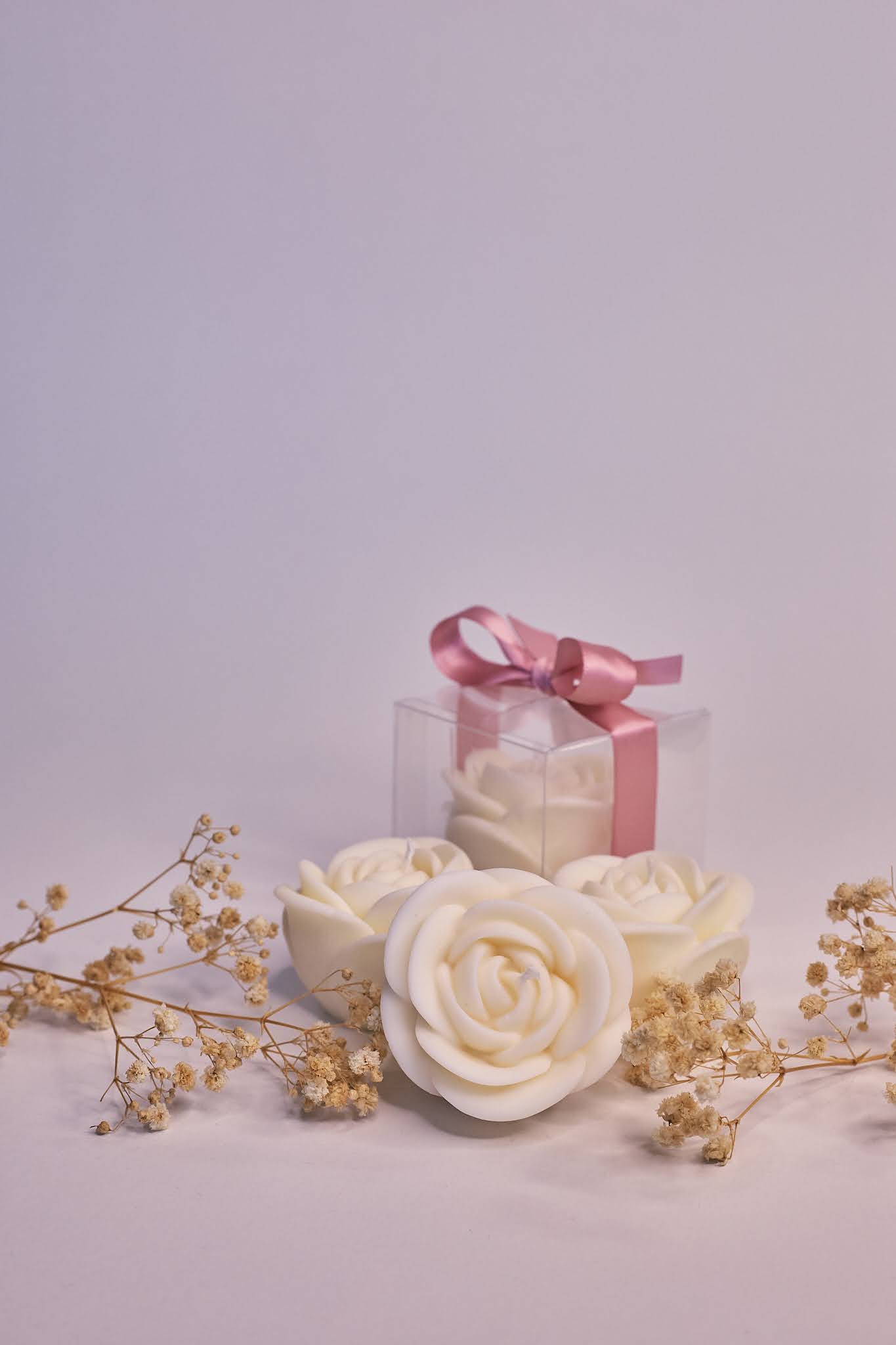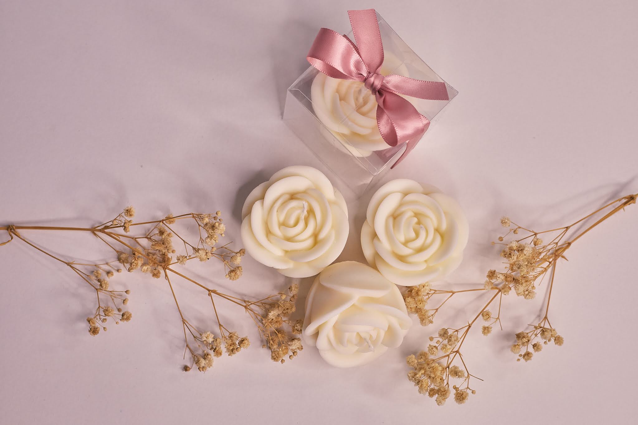 - Nježne dekorativne ružice izrađene od čistog sojinog voska, idealne kao mali poklon za goste, dio dekoracije ili suvenir za posebne prigode. Dolaze u prozirnoj kutijici s mašnicom, a po želji mogu biti prilagođene bojom i pakiranjem.